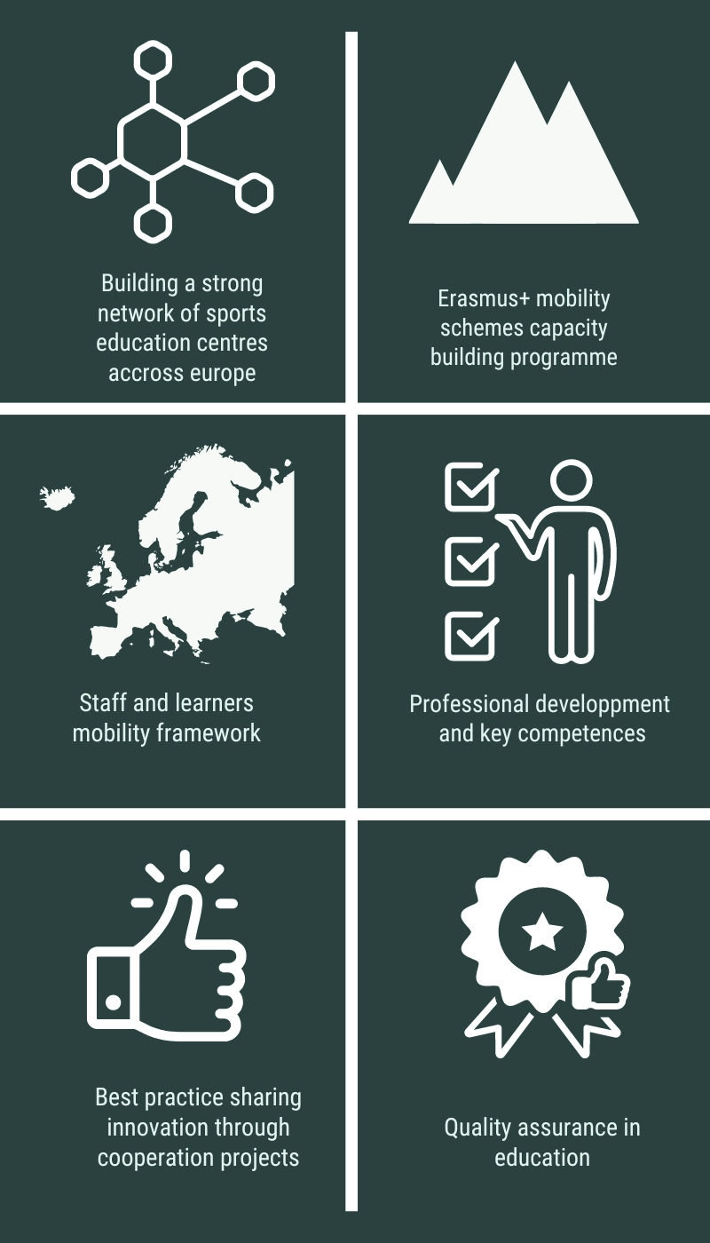 Any organisation active in the Higher Education (HE) field or vocational education training centre (VET) with expertise on the topic of outdoor sports are welcome to join the network.